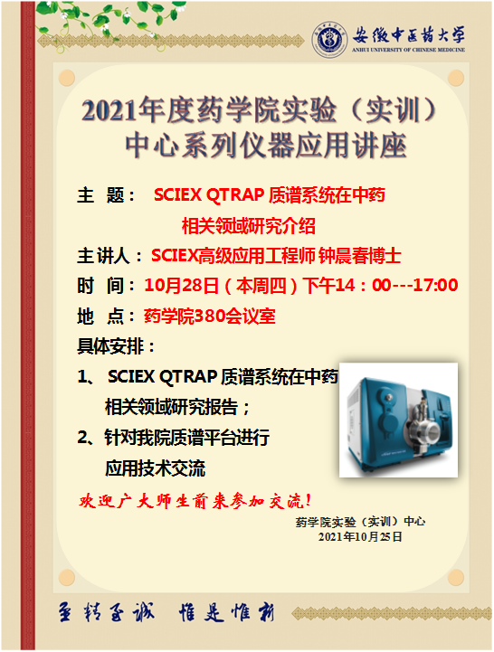 主题:SCIEX QTRAP质谱系统在中药相关领域研究介绍